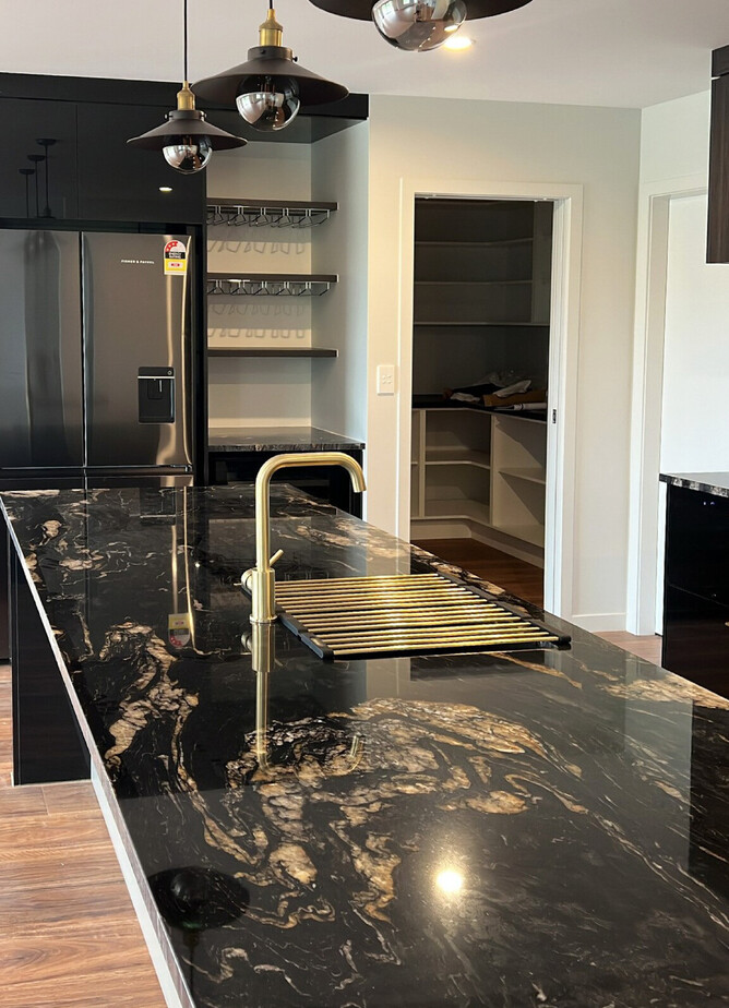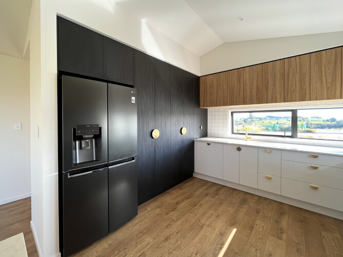 We schedule a meeting to discuss our client's project brief and budget expectations. For renovation projects, we'll conduct an on-site visit to assess the space and take initial measurements; for new builds, obtain the house plans. I utilise CAD software to draft the design and provide a price estimate. Subsequently, our clients are invited to our showroom (at 11 Maui Street, Hamilton), where I'll present the kitchen design and pricing live in our 3D CAD software. During this meeting, I guide them through material selections, and upon confirmation, a 50% deposit is then required to proceed.