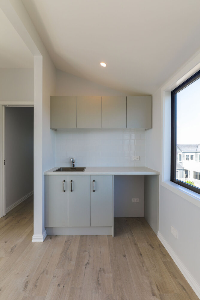 The clients selection of wood-look laminate floors can be enjoyed in various areas of this two-story residence, including the entrance, kitchen, dining and living rooms, rumpus room, granny flat, laundry, and hallways.