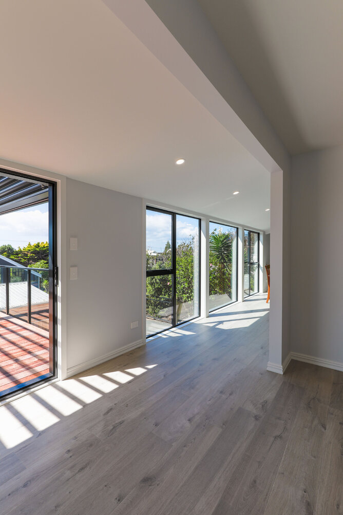 Take a look at our Impressive Soft Oak Light laminate floor, which was recently installed in this modern Papamoa beach renovation completed by Straight Up Builders.