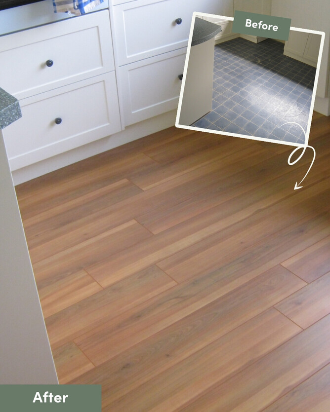 Check out our before and after photos to see how our laminate, timber, or corkwood flooring has changed our clients' kitchens and homes. These pictures show the big difference our floors can make in any renovation project.