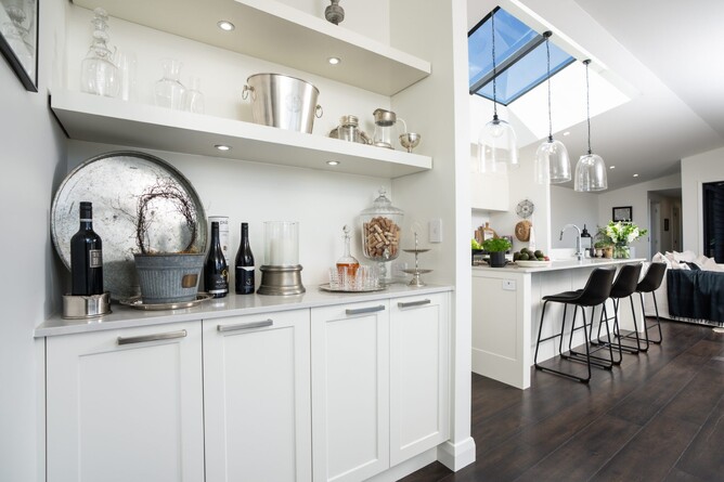 See our recent project below which showcases the stunning impact of dark laminate flooring, specifically the Laminate Perspective Nature Waxed Oak Brown. This floor choice creates a sharp contrast against the lighter-coloured walls and furnishings, emphasising a sleek and modern aesthetic.