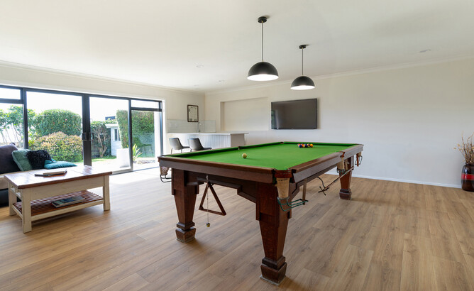 As the light levels differ throughout this home, choosing high-quality laminate flooring was essential for durability in sunlit areas and scratch and dent resistance for high traffic areas, which was ideal for the entranceway and rumpus room, which houses the heavy pool table.