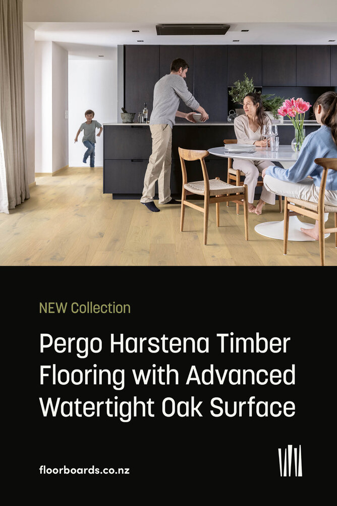 Introducing the new Harstena timber flooring by Pergo, now available in our store this September. The Harstena collection brings elegance and durability to your home with its advanced watertight European oak surface.