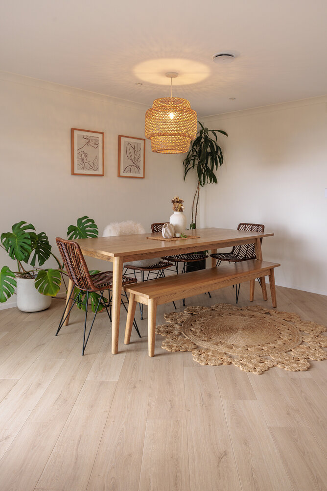 The homeowners wanted a natural timber look and opted for a high quality laminate after discussing their needs. With two dogs and large north-facing sliders leading to the deck, they required a floor that was durable, scratch-resistant for pets, and sun-fade resistant to withstand daily sun exposure. The Perspective Nature Brushed Oak Natural Laminate Flooring by Quick-Step ticked all the boxes for the perfect fit for performance, texture and colour.
