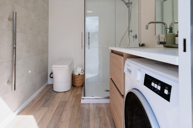 Small but mighty, the Summit Suite by Summit Solution is redefining portable bathrooms. Designed for homeowners tackling renovations, this self-contained bathroom on wheels offers comfort, convenience, and a touch of luxury. Included in the design is our Hybrid Waterproof Vinyl flooring, the ultimate solution for wet areas such as bathrooms and laundries.
