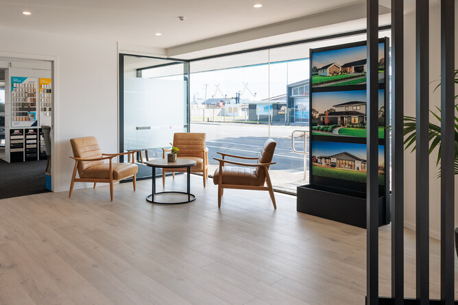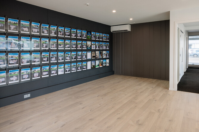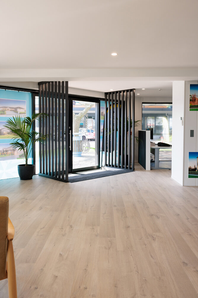 Latitude Homes BOP Construction Office: Located in Mount Maunganui, the office opened in July 2025 and serves the Bay of Plenty and Western BOP from Waihi down to Waihau Bay. Their new construction office showcases Floorboards' Quick-Step Impressive flooring as part of its design.
